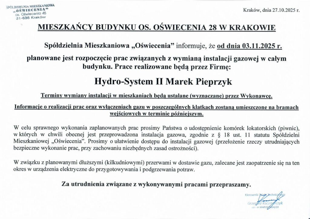 Strona głównaAktualnościWymiana instalacji gazowej – os. Oświecenia 28