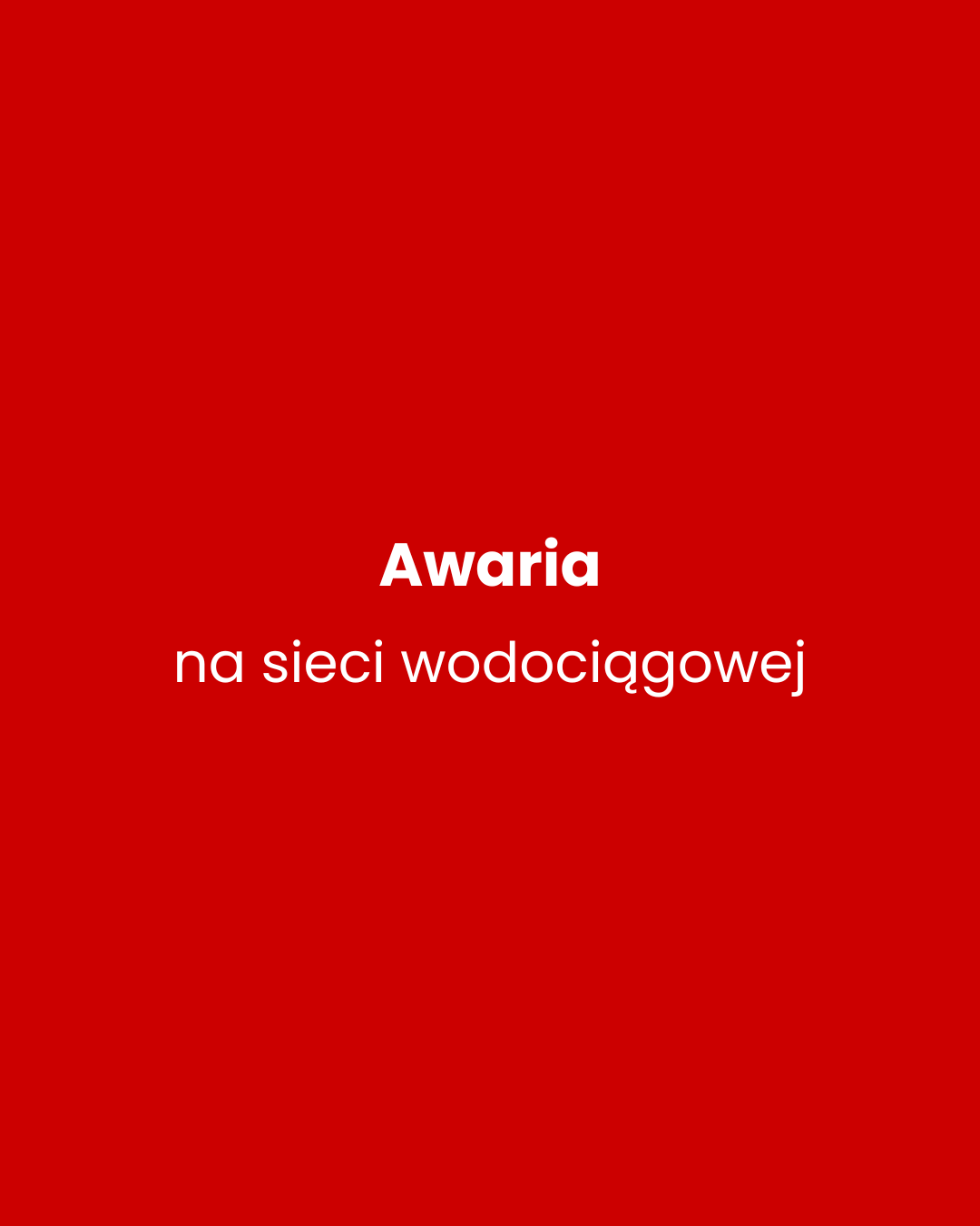 Przewidywany czas przywrócenia dostawy wody godzina 18:00.