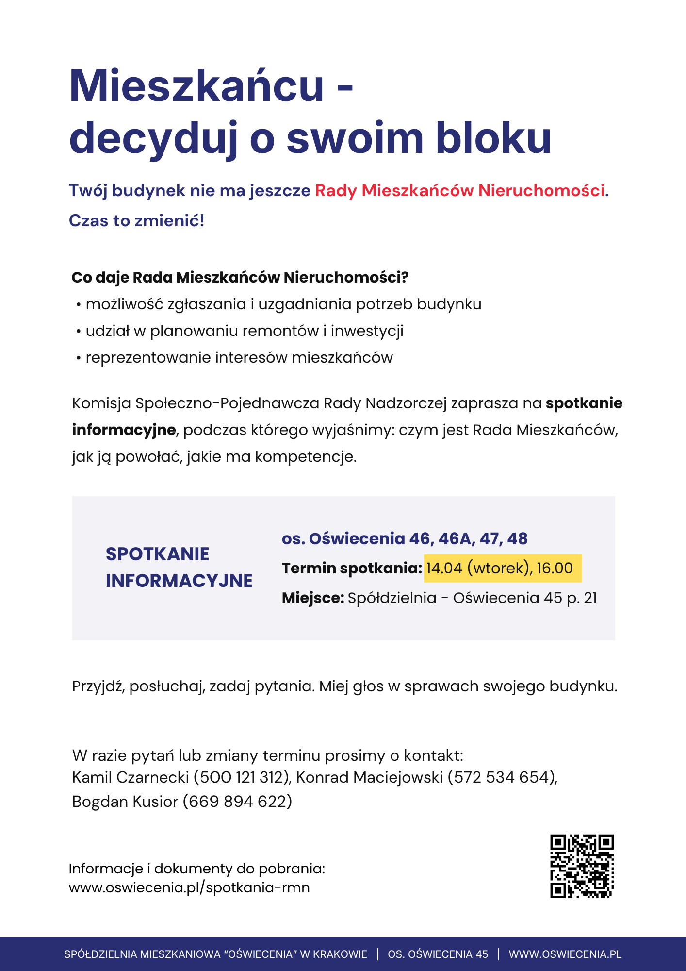 miejsce: siedziba Spółdzielni na Oświecenia 45, pokój 21